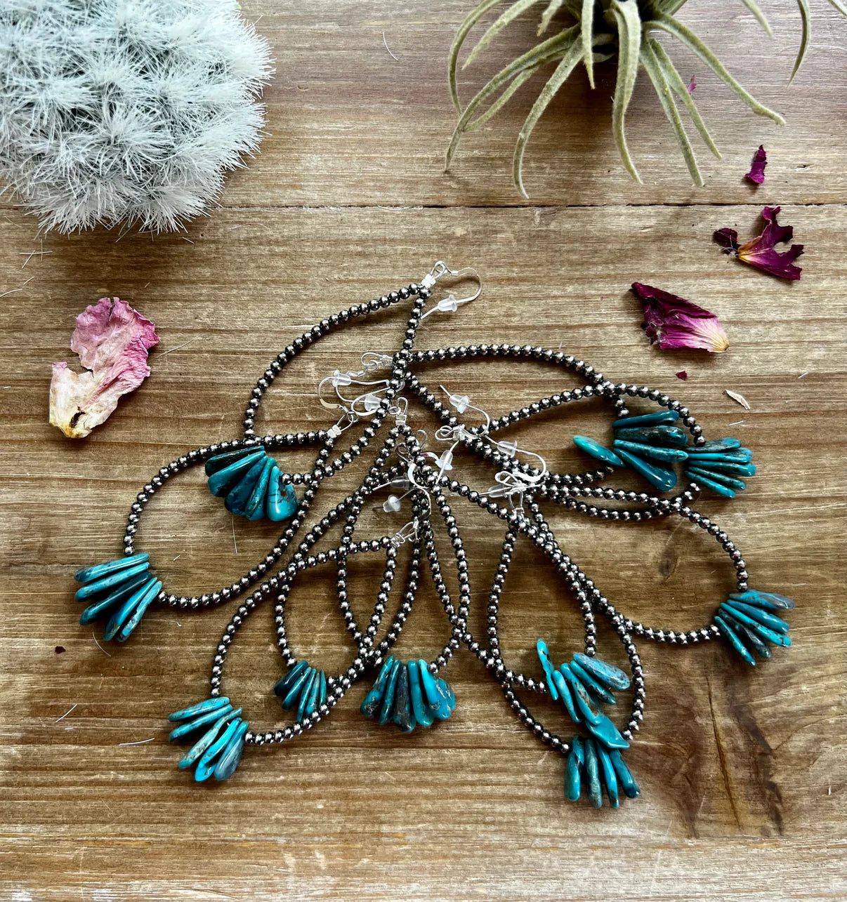 Long teardrop earrings Sterling silver pearls and teardrop turquoise