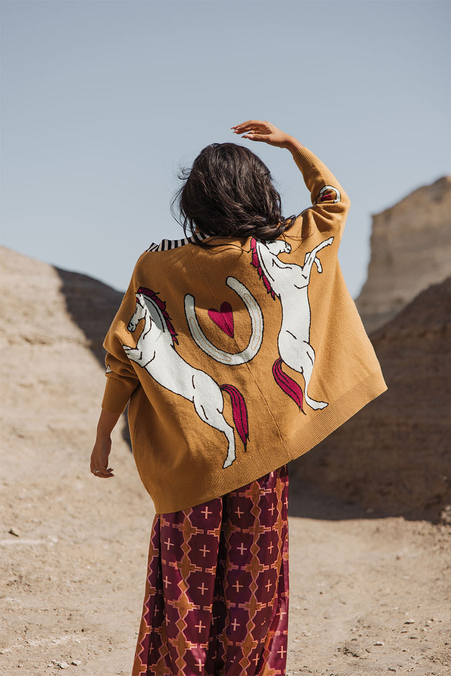 The sweater you stole from your ex-boyfriend, but better. An oversized fit that we are in love with! Hand drawn art beautifully knitted into your new favorite thing and IT HAS POCKETS!