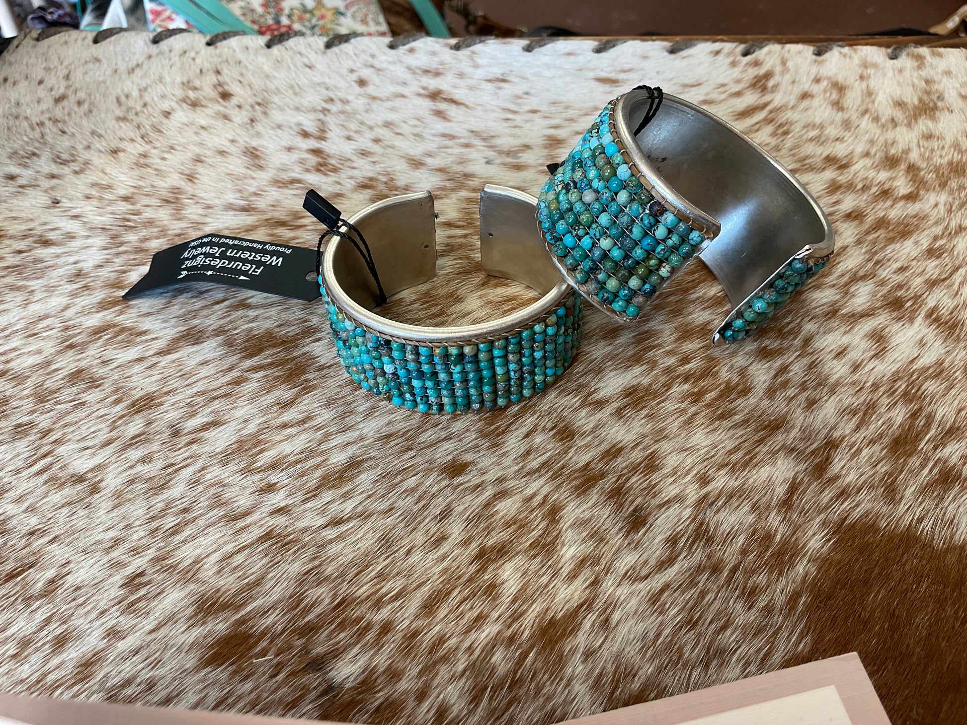 Natural Turquoise Loomed Bangle Cuff
