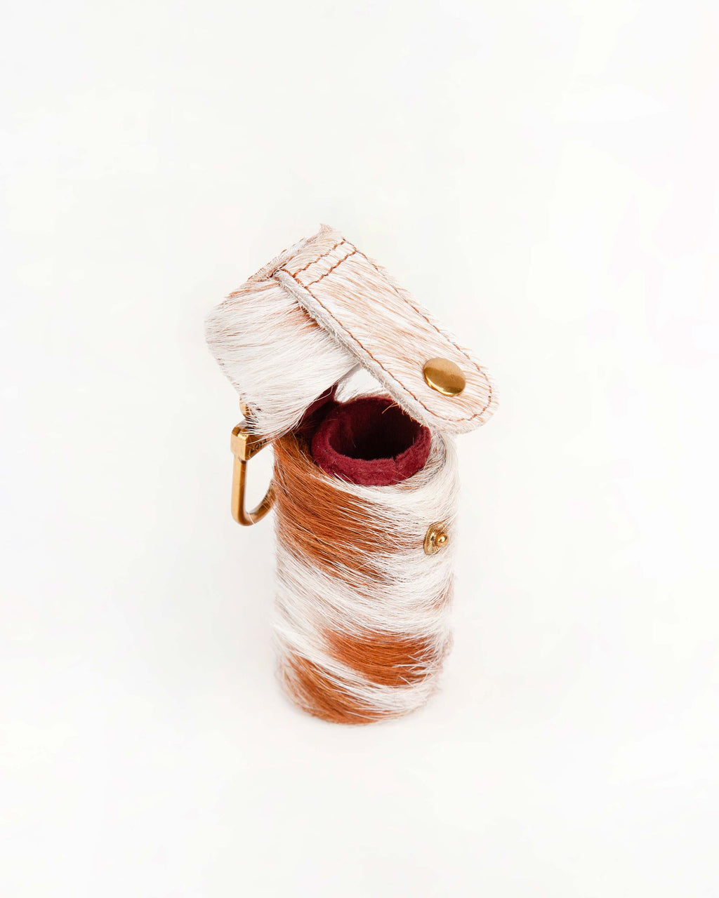 The Painted Pony Lipstick Case is a beautifully crafted accessory made from embossed calfskin. The intricate design unfolds like a desert garden in bloom, showcasing feminine artistry with a touch of rustic charm. This small lipstick case is both functional and stylish, securely snapping closed to protect your essentials. With its elegant pattern and premium materials, it's the perfect accessory for the modern trailblazer looking to combine beauty and practicality.