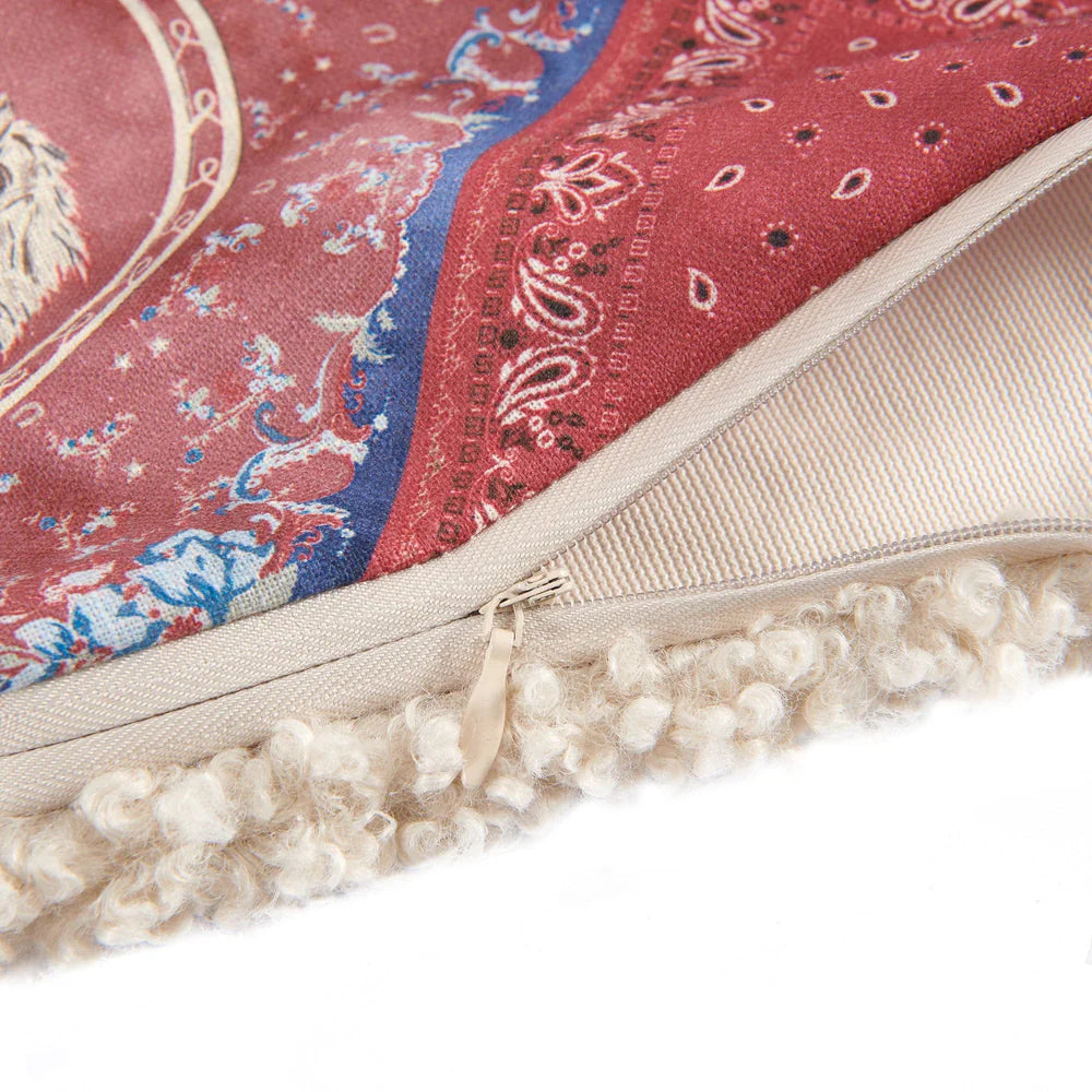 Capture the essence of Western heritage with the Patchwork Bandana Teddy-Backed Pillow, our spin on an iconic Tasha Polizzi print. Traditional bandana paisley patterns are masterfully arranged in a bold patchwork design, showcasing warm reds, neutral creams, and cool blues. The reverse side reveals an ultra-plush bouclé back for ultimate comfort. Use this ranch pillow as an accent piece on your bed or sofa for a vintage Western touch. It layers beautifully with our Lee Western Washed Denim Bedding Set or our bestselling Stella Collection in stone white or midnight blue. Part of the Tasha Polizzi for Paseo Road Collection—our exclusive collaboration with the iconic Tasha Polizzi, where we reimagine their beloved Western designs for the home.