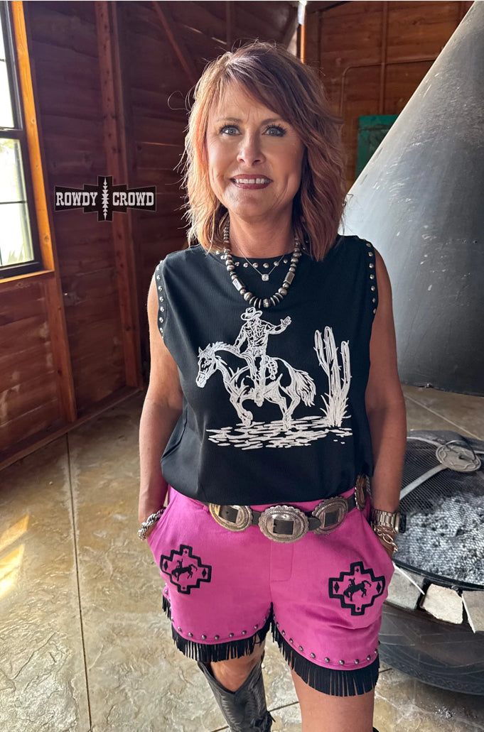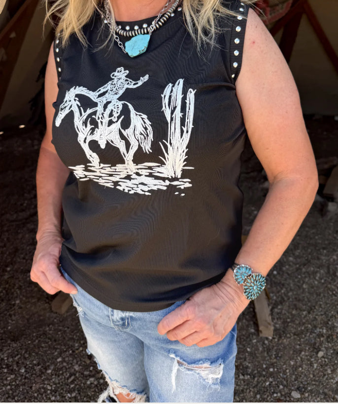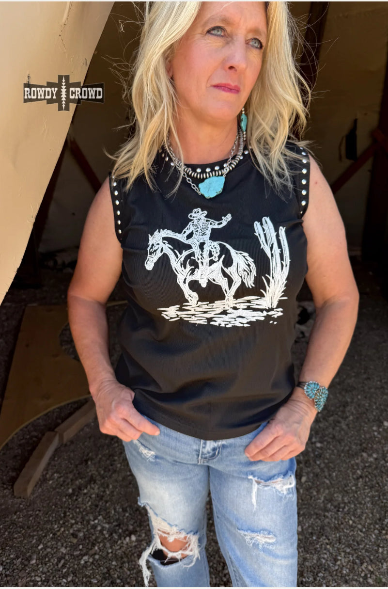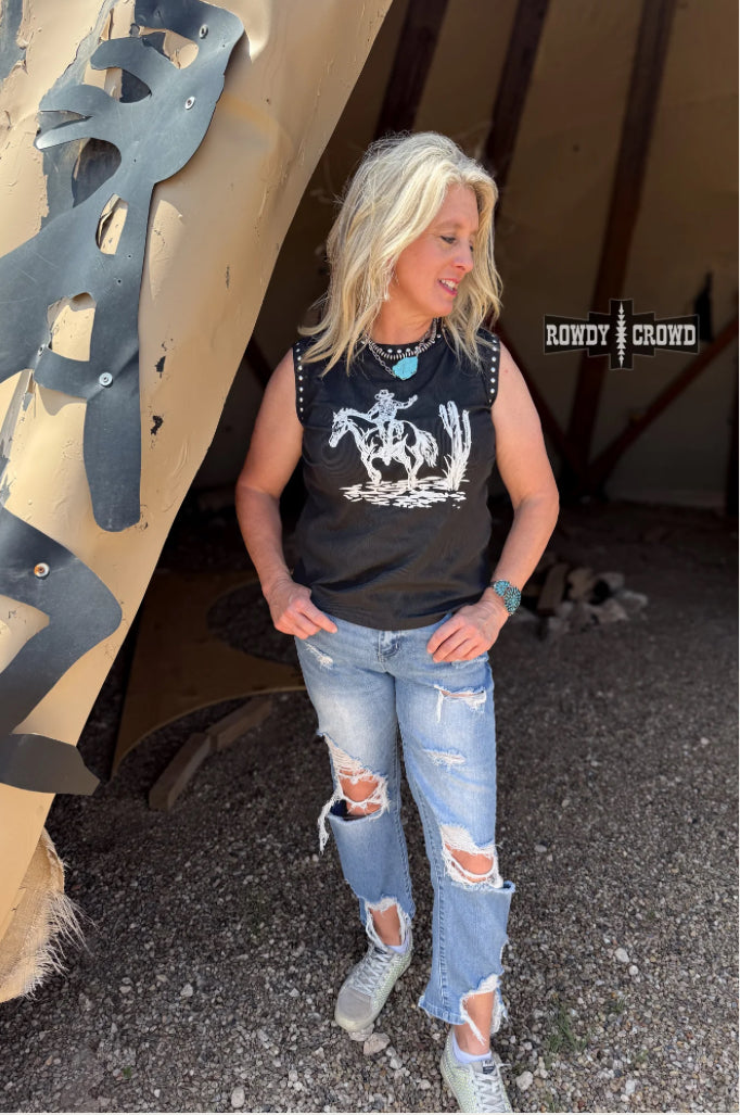 Say howdy to our Rank Horse Tank! This ribbed tank with silver studs around the neckline and shoulders is sure to be a crowd pleaser! From rodeos to concerts, this tank is sure to keep you cool and stylish!