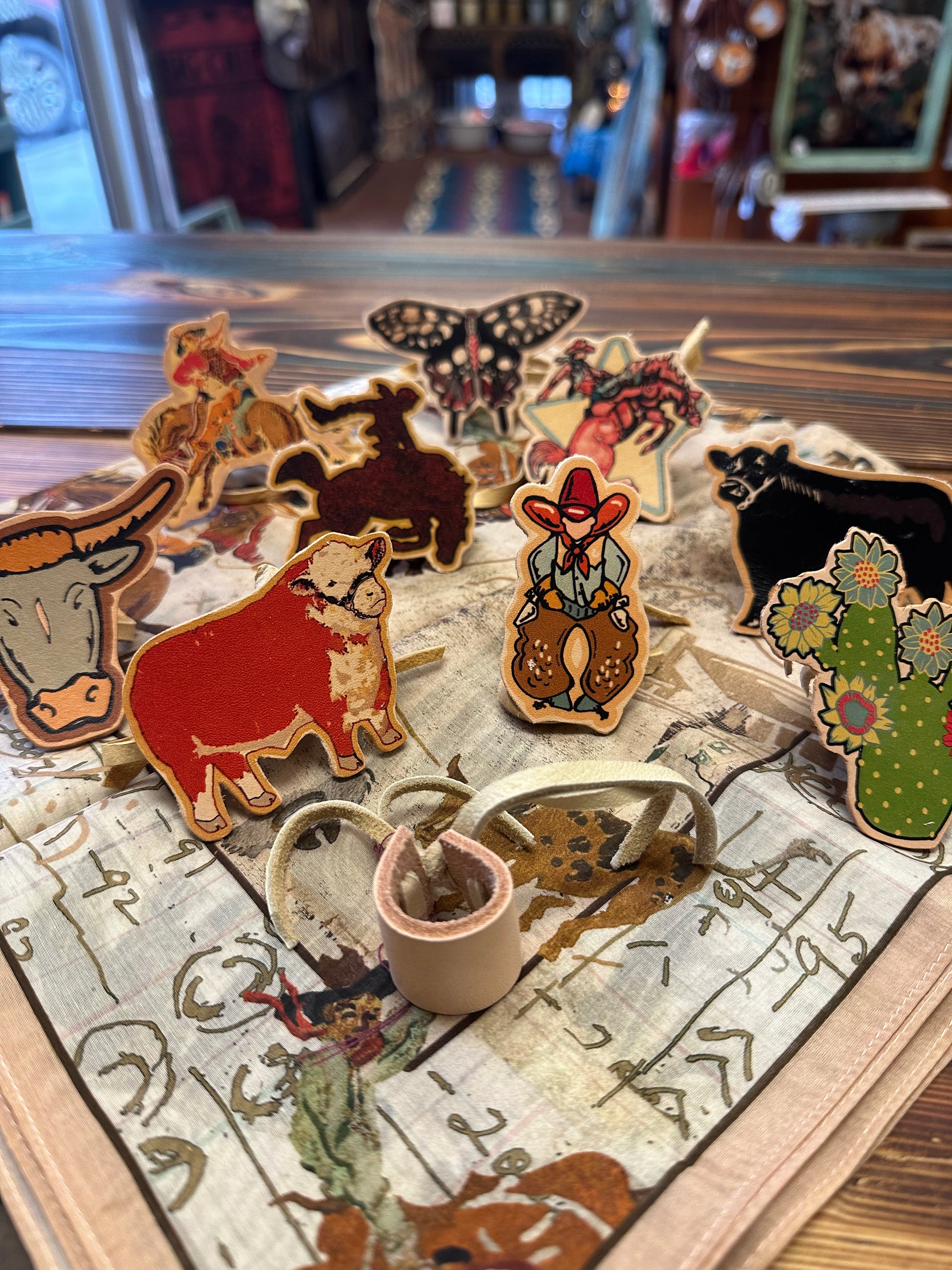 These adorable leather scarf slides are a must for your scarves! The artwork is hand drawn by the XOXO team.