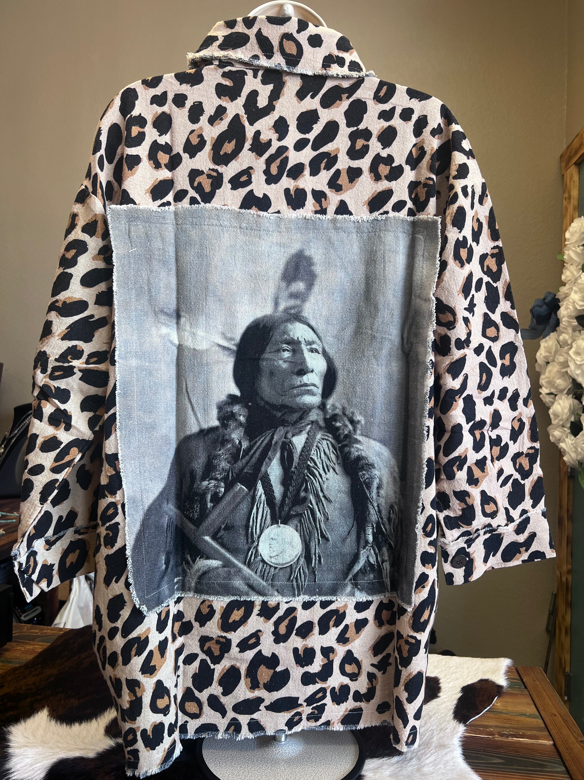 Leopard Shacket with Native American Patch