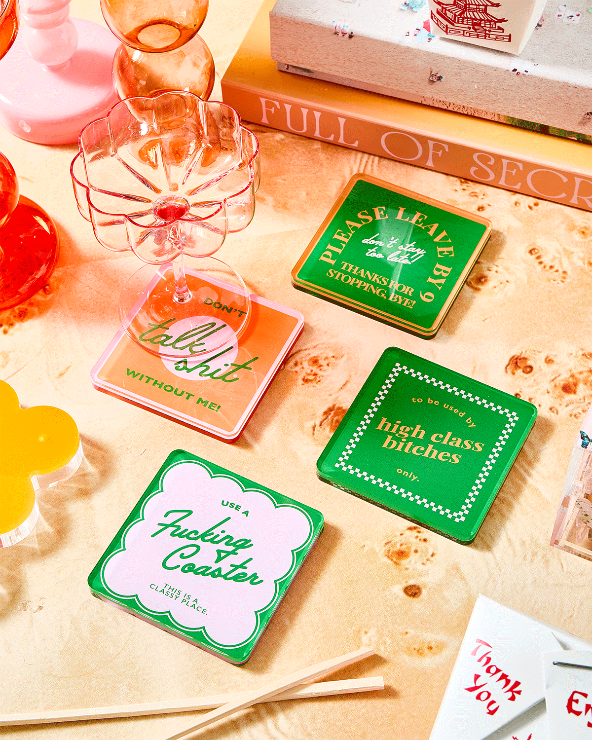 Add a pop of attitude to your coffee table with these Snarky Coasters. Made of acrylic, each coaster delivers a playful message to anyone who thinks they're above using a f*ing coaster. Keep your surfaces protected and your guests entertained.