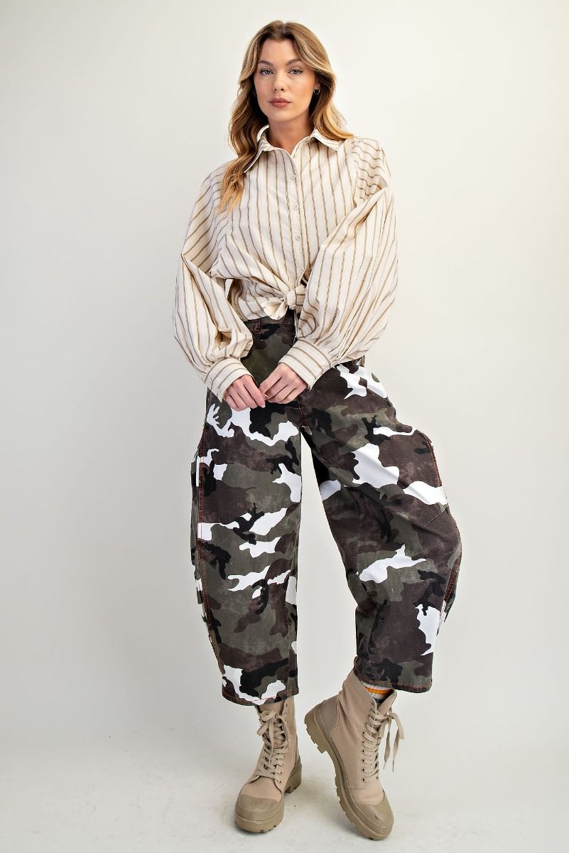 STRIPED BUTTON DOWN WOVEN SHIRT