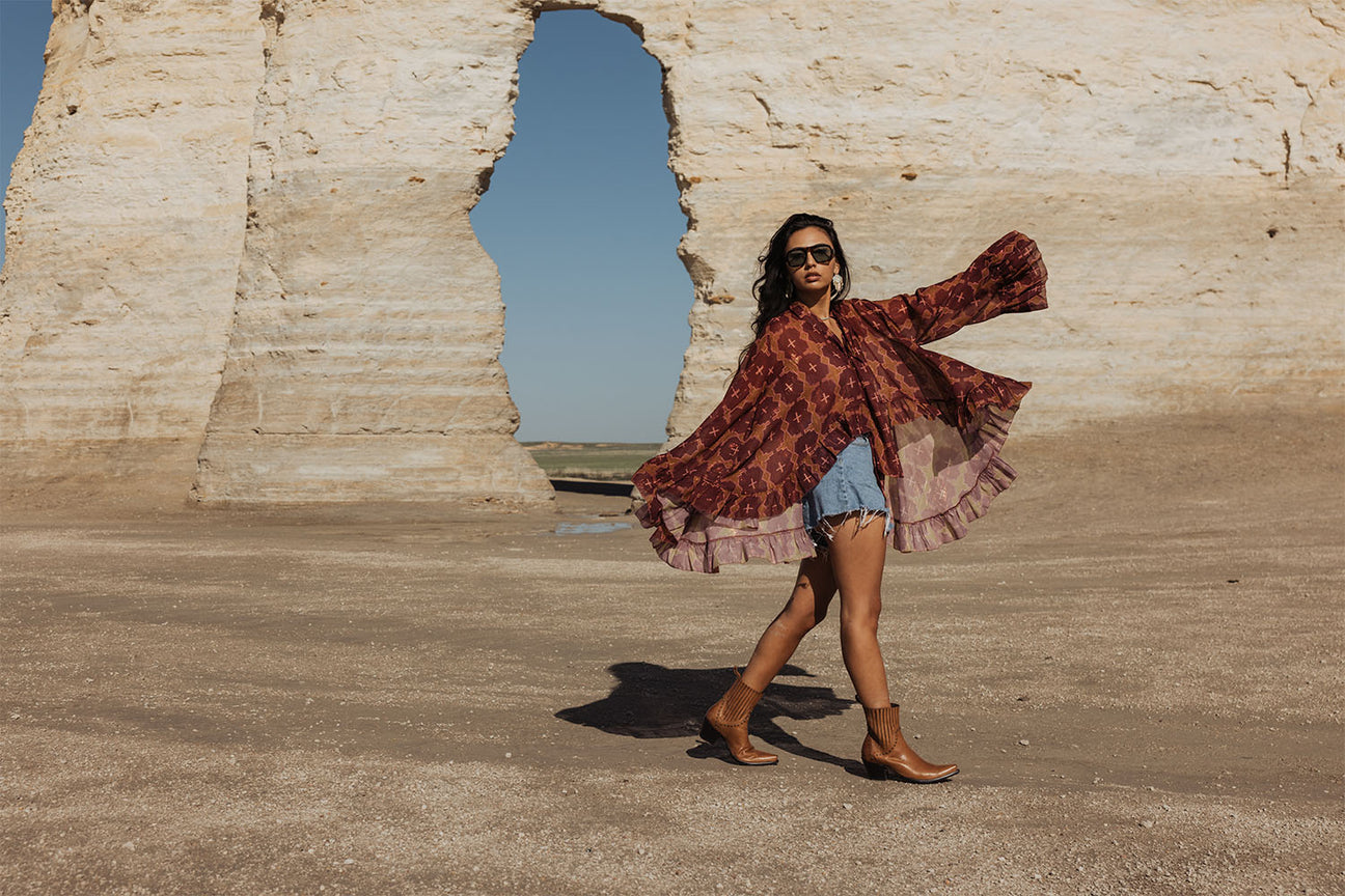 Breezy girl, you need this! Beautiful hand drawn print with gorgeous metallic thread running throughout.