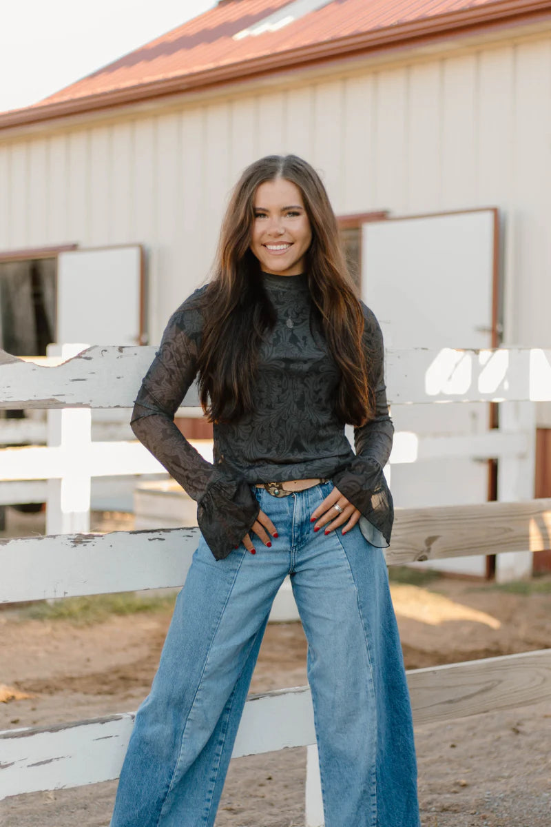 Elevate your wardrobe with the Tooled In Black Mesh Top, featuring delicate black mesh fabric enhanced by intricate tooled details. This top offers a bold yet elegant look, perfect for making a statement at any event. Its lightweight, breathable design ensures comfort while showcasing your unique style. Pair it with your favorite pieces to create an effortlessly chic outfit that turns heads.