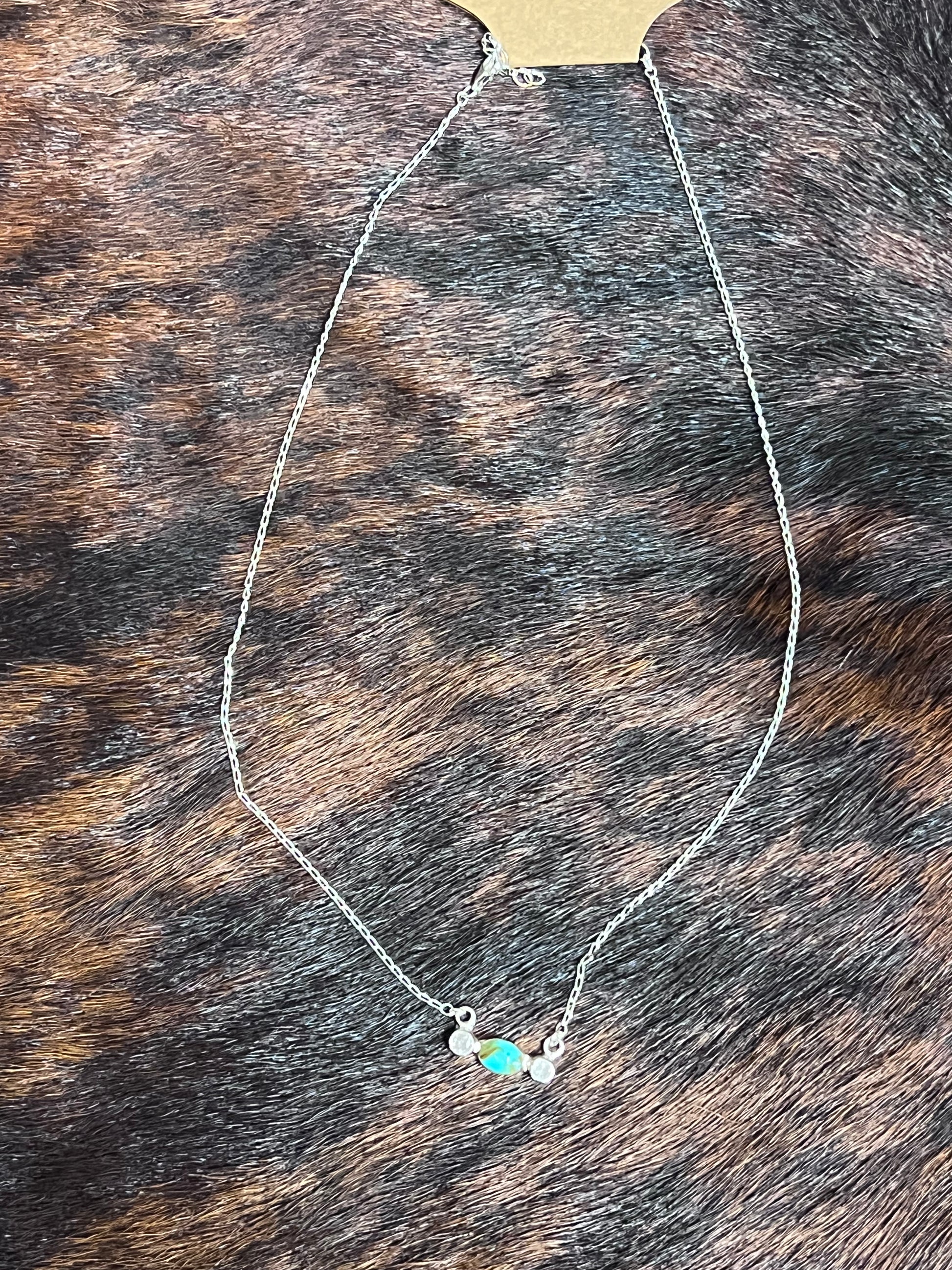Turquoise Oval Double CZ Necklace