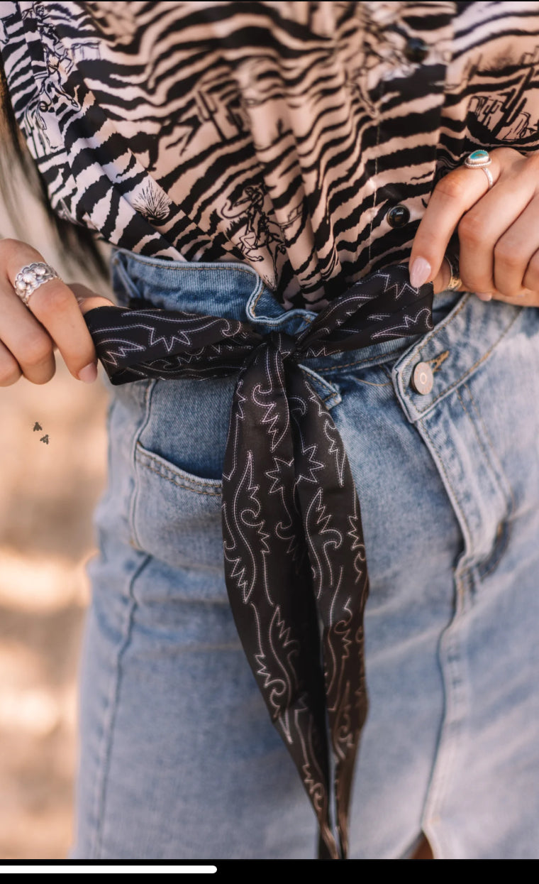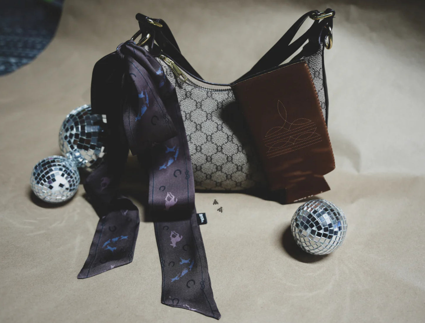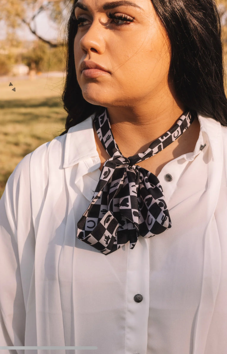Get the preppy look by pairing it with a collared shirt, tying it in your hair, or giving that LOUIE handbag a Western flare