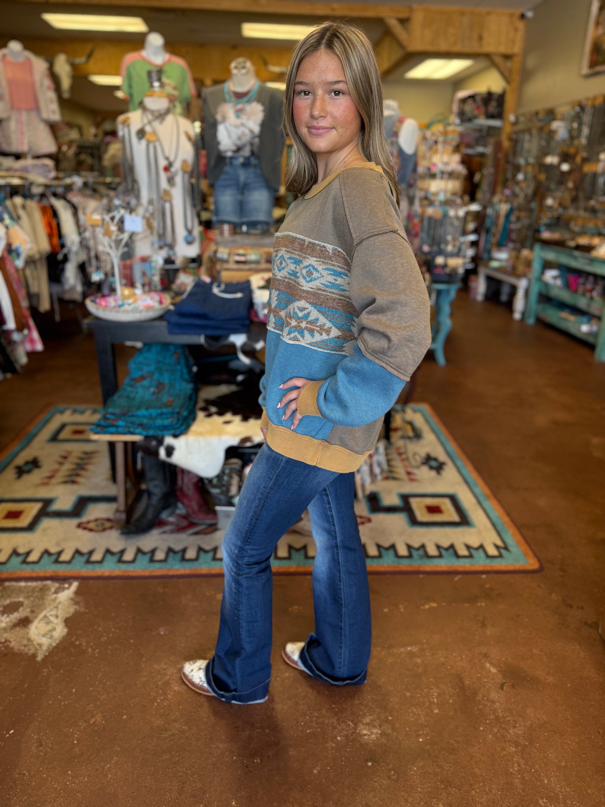 ETHNIC PRINT MIX COLOR BLOCK PULLOVER