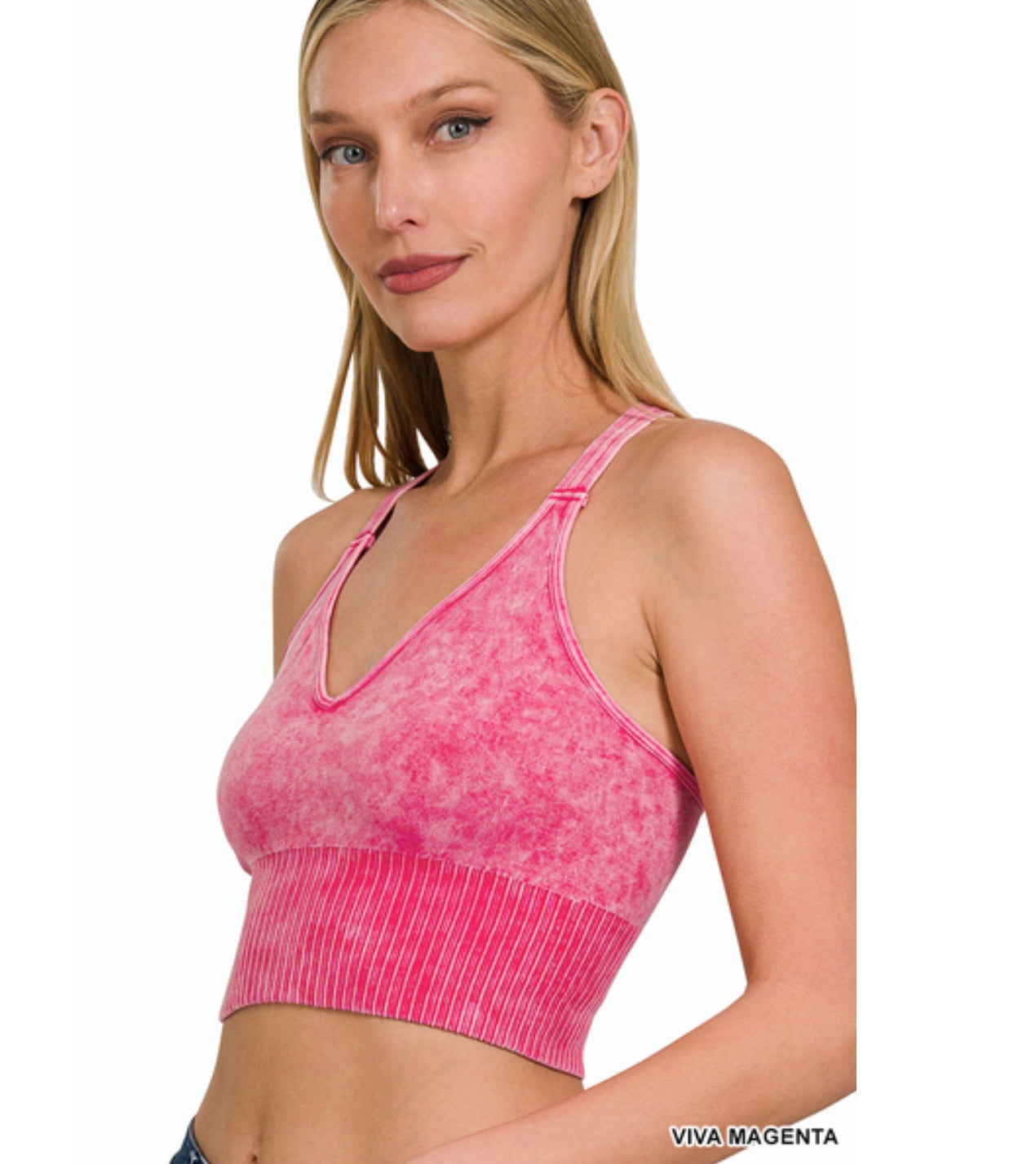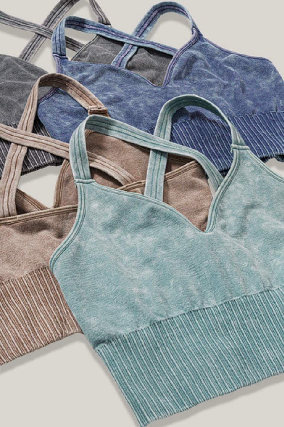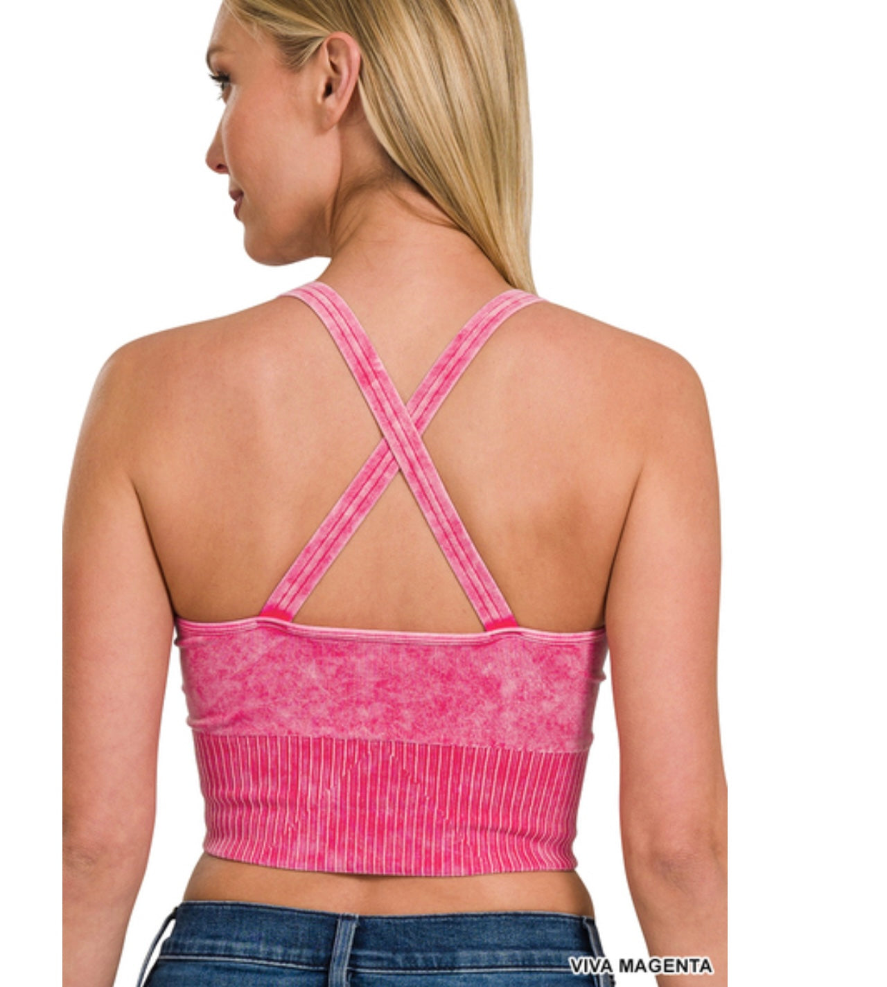 WASHED CRISSCROSS STRAP BACK V-NECK CROPPED TANK TOP